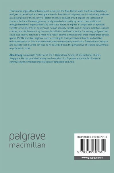 This volume argues that international security in the Asia-Pacific lends itself to contradictory analyses of centrifugal and centripetal trends. Transitional polycentrism is intrinsically awkward as a description of the security of states and their populations; it implies the loosening of state control and the emergence of newly asserted authority by mixed constellations of intergovernmental organizations and non-state actors. It implies a competition of agendas: threats to the integrity of borders and human security threats such as natural disasters, airliner crashes, and displacement by man-made pollution and food scarcity. Conversely, polycentrism could also imply a return to a more neo-realist oriented international order where great powers ignore ASEAN and steer regional order according to their perceived interests and relative military superiority. This book embraces these contradictory trends as a foundation of analysis and accepts that disorder can also be re-described fromthe perspective of studied detachment as polycentric order.