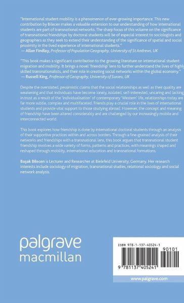 "International student mobility is a phenomenon of ever growing importance. This new contribution by Bilecen makes a valuable extension to our understanding of how international students are part of transnational networks. The sharp focus of this volume on the significance of transnational friendships by doctoral students will be of especial interest to sociologists and geographers as they seek to extend their understanding of the significance of spatial and social proximity in the lived experience of international students." - Allan Findlay, University of St Andrews, Scotland