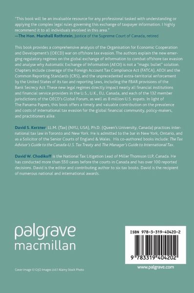 This book provides a comprehensive analysis of the Organisation for Economic Cooperation and Development's (OECD) war on offshore tax evasion. The authors explain the new emerging regulatory regimes on the global exchange of information to combat offshore tax evasion and analyse why Automatic Exchange of Information (AEOI) is not a "magic bullet" solution. Chapters include coverage of the Foreign Account Tax Compliance Act (FATCA), AEOI and the Common Reporting Standards (CRS), and the unprecedented extra-territorial enforcement by the United States of its tax and reporting laws, including the FBAR provisions of the Bank Secrecy Act. These new legal regimes directly impact nearly all financial institutions and financial service providers in the U.S., U.K., EU, Canada, and each of the 132 member jurisdictions of the OECD's Global Forum, as well as 8 million U.S. expats. In light of The Panama Papers, this book offers a timely and valuable contribution on the prevalence andcosts of international tax evasion for the global financial community, policy-makers, and practitioners alike.