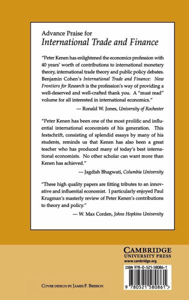 This collection of original essays offers a selection of contemporary scholarship intended to help define an agenda for future research in the field of international trade and finance. Written to honour Peter B. Kenen and to follow his work, the volume is divided into three parts: international trade theory, international monetary theory, and applied policy analysis. Trade issues addressed include the role of capital in standard trade models, welfare implications of economic integration, and the relationship between economic openness and the size of government. The monetary chapters include two related essays on the effects of exchange rates on economic activity and two essays on aspects of optimum currency area theory. Applied policy papers include two on industrial countries, two on developing countries, and one on problems of transition in the successor states of the former Soviet Union. Also included is an essay by Paul Krugman assessing Kenen's lifetime of scholarly achievements.