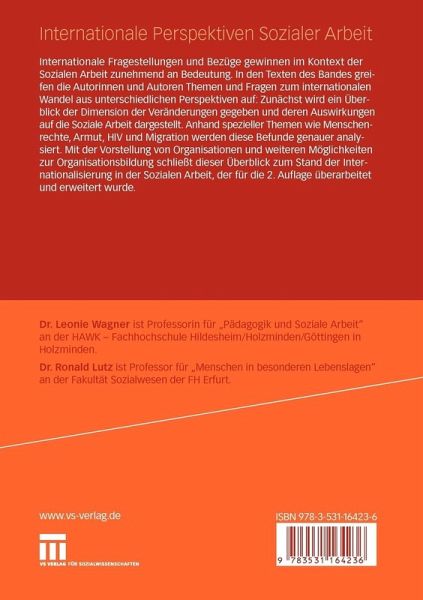 Dr. Leonie Wagner ist Professorin für Pädagogik und Soziale Arbeit an der HAWK - Fachhochschule Hildesheim/Holzminden/Göttingen in Holzminden. Dr. Ronald Lutz ist Professor für 'Menschen in besonderen Lebenslagen' an der Fakultät Sozialwesen der FH Erfurt.