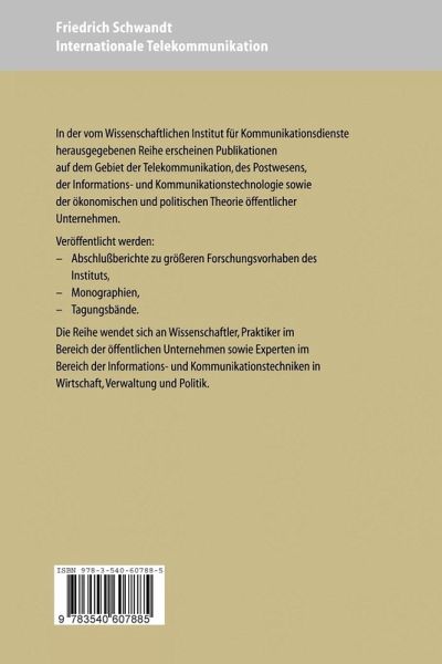 1 Problemstellung.- 2 Charakterisierung des Sektors.- 2.1 Internationale Fernsprechdienste und -netze.- 2.2 Nachfrage nach grenzüberschreitendem Fernsprechverkehr.- 2.3 Internationales Verkehrsaufkommen.- 2.4 Kosten des grenzüberschreitenden Fernsprechverkehrs.- 2.5 Preise des grenzüberschreitenden Fernsprechverkehrs.- 2.6 Vergleich zwischen Kosten, Accounting Rates und Collection Charges.- Annex 1 : Herleitung der Nachfrage- und Kreuzpreiselastizitäten.- 3 Institutioneller Rahmen der internationalen Telekommunikation.- 3.1 Einleitung.- 3.2 Internationale Regulierungen.- 3.3 Nationale Regulierungen.- 3.4 Zwischenergebnis.- 3.5 Allgemeine Reformentwicklungen.- Annex 2: TEUREM-Abkommen.- 4 Erklärungen zur Existenz von Accounting Rate Abkommen.- 4.1 Industrieökonomischer Erklärungsansatz.- 4.2 Historischer Erklärungsansatz.- 5 Preissetzung im Accounting Rate Abkommen.- 5.1 Einleitung.- 5.2 Preisbildung bei öffentlichen Netzen.- 5.3 Nationale Regulierung ausländischer Marktmacht.- 5.4 Zwischenergebnis.- Annex 3: Ergänzungen zur Preisbildung im Accounting Rate Abkommen.- Annex 4: Preisbildung bei privaten Netzen.- 6 Wettbewerbsformen.- 6.1 Rückrufwettbewerb.- 6.2 Transitwettbewerb.- 6.3 Drittland-Wettbewerb.- 6.4 Weiterverkaufswettbewerb.- 6.5 Infrastrukturwettbewerb.- 6.6 Zwischenergebnis.- 7 Kostenorientierte, effiziente Netzzugangsgebühren.- 7.1 Neue Netzregulierung und -segmentierung.- 7.2 Netzzugangsgebühren.- 7.3 Zwischenergebnis.- 8 Vorschläge zu einem neuen Regulierungsrahmen.- 8.1 Einleitung.- 8.2 Institutioneller Rahmen.- 8.3 Reformvorschläge zum bestehenden Zwischenpreissystem.- 8.4 Zwischenergebnis.- Annex 5: Nationale Netzzugangssteuer.- 9 Zusammenfassung.- Verzeichnis der Abbkürzungen.- Verzeichnis der Abbildungen.- Verzeichnis der Tabellen.