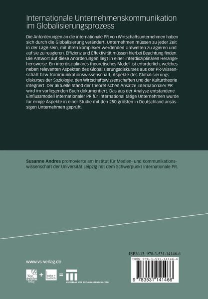 Die Anforderungen an die internationale PR von Wirtschaftsunternehmen haben sich durch die Globalisierung verändert. Ein interdisziplinäres theoretisches Modell ist erforderlich, welches neben relevanten Aspekten des Globalisierungsdiskurses aus der PR-Wissenschaft bzw. Kommunikationswissenschaft, Aspekte des Globalisierungsdiskurses der Soziologie, den Wirtschaftwissenschaften und der Kulturtheorie integriert.