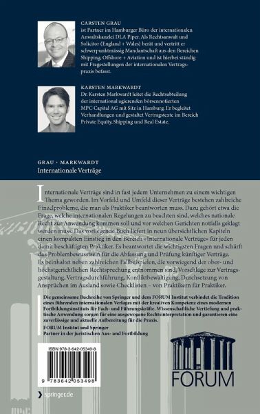 Internationale Verträge sind in fast jedem Unternehmen zu einem wichtigen Thema geworden. Im Vorfeld und Umfeld dieser Verträge bestehen zahlreiche Einzelprobleme, die man als Praktiker beantworten muss. Dazu gehört etwa die Frage, welche internationalen Regelungen zu beachten sind, welches nationale Recht zur Anwendung kommen soll und vor welchen Gerichten notfalls geklagt werden muss. Das vorliegende Buch liefert in neun übersichtlichen Kapiteln einen kompakten Einstieg in den Bereich "Internationale Verträge" für jeden damit beschäftigten Praktiker. Es beantwortet die wichtigsten Fragen und schärft das Problembewusstsein für die Abfassung und Prüfung künftiger Verträge. Es beinhaltet neben zahlreichen Fallbeispielen, die vorwiegend der ober- und höchstgerichtlichen Rechtsprechung entnommen sind, Vorschläge zur Vertragsgestaltung, Vertragsdurchführung, Konfliktbewältigung, Durchsetzung von Ansprüchen im Ausland sowie Checklisten - von Praktikern für Praktiker.