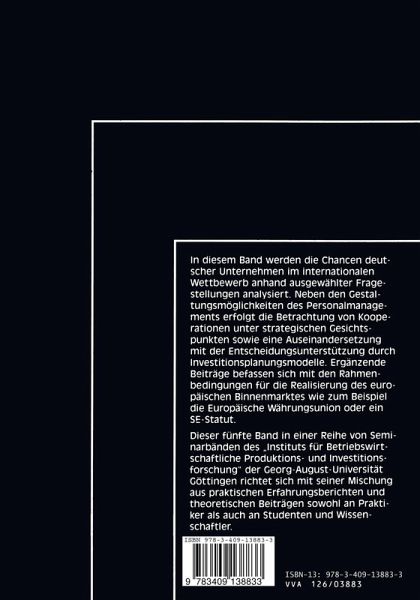 Der vorliegende Sammelband ist nach ''Innovation und Controlling", ''Pro blemorientiertes Management", "Standort Deutschland" und "Umweltschutz und Investi tionen" der fiinfte aus der Reihe von Seminarbanden des "Instituts fUr Betriebs wirtschaftliche Produktions- und Investitionsforschung", Abteilung "Industrielles Management" an der Georg-August-Universitat Gottingen. Die in dieser Reihe erschei nenden Bande enthalten insbesondere Beitrage von vomehmlich aus der Wirtschaft stammenden Personlichkeiten, die im Rahmen des alljahrlich im Wintersemester statt findenden Seminars vor Studenten hOherer Semester und geladenen Gasten vorgetragen wurden. Die Redner berichten in den Veranstaltungen, die im AnschluB an den Vortrag eine ausfUhrliche Diskussion der Thematik mit dem Auditorium beinhalten, aus der Praxis und geben ihre Erfahrungen weiter. Das Seminar dient somit als Plattform des Know-How-Transfers zwischen Wissenschaft und Praxis. Die Seminarbande enthalten eine Mischung von Aufsatzen -yom praktischen Erfah rungsbericht bis zum theoretischen Beitrag -und richten sich somit sowohl an Praktiker als auch an Studenten und Wissenschaftler. Der Band "Intemationale Wettbewerbsfahigkeit" bezieht sich auf das Seminar des Win tersemesters 1991/92. Die Beitrage gehen auf die Bereiche Personal, Kooperationen und Investitionen ein, lassen jedoch auch andere Aspekte im intemationalen Wettbewerb nicht auBer Acht.