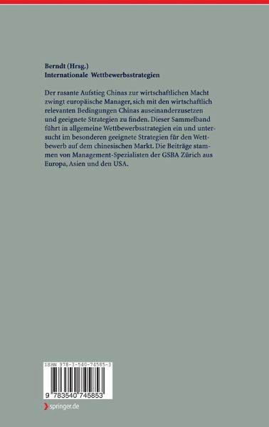 Der rasante Aufstieg Chinas zur wirtschaftlichen Macht zwingt europäische Manager, sich mit den wirtschaftlich relevanten Bedingungen Chinas auseinanderzusetzen und geeignete Strategien zu finden. Dieser Sammelband führt in allgemeine Wettbewerbsstrategien ein und untersucht im besonderen geeignete Strategien für den Wettbewerb auf dem chinesischen Markt. Die Beiträge stammen von Management-Spezialisten der GSBA Zürich aus Europa, Asien und den USA.