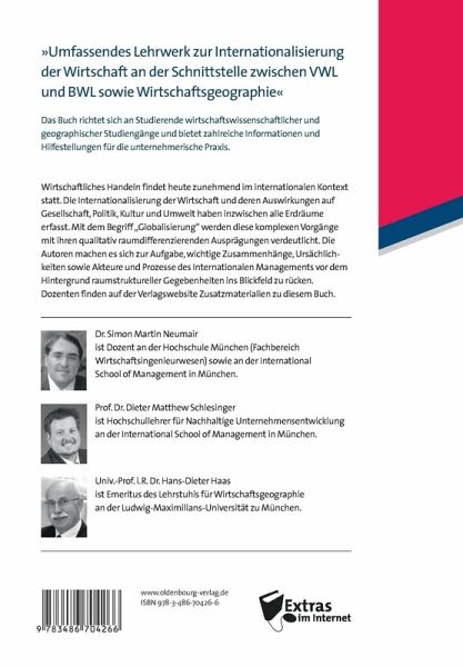 Wirtschaftliches Handeln findet heute zunehmend im internationalen Kontext statt und überschreitet dabei mehrfach Ländergrenzen, was sich immer deutlicher in den alltäglichen Wertschöpfungsprozessen von Unternehmen niederschlägt. Diese Internationalisierung der Wirtschaft und deren Auswirkungen auf Gesellschaft, Politik, Kultur und Umwelt haben inzwischen alle Erdräume erfasst. Mit dem Begriff "Globalisierung" werden diese komplexen Vorgänge mit ihren qualitativ raumdifferenzierenden Ausprägungen verdeutlicht. Die Autoren machen es sich zur Aufgabe, wichtige Zusammenhänge, Ursächlichkeiten sowie Akteure und Prozesse des Internationalen Managements vor dem Hintergrund raumstruktureller Gegebenheiten ins Blickfeld zu rücken.