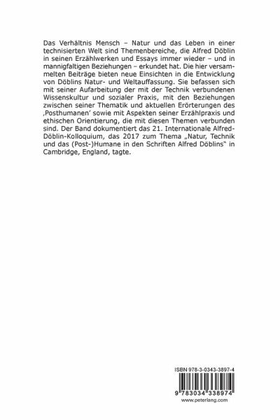 Das Verhältnis Mensch - Natur und das Leben in einer technisierten Welt sind Themenbereiche, die Alfred Döblin in seinen Erzählwerken und Essays immer wieder - und in mannigfaltigen Beziehungen - erkundet hat. Die hier versammelten Beiträge bieten neue Einsichten in die Entwicklung von Döblins Natur- und Weltauffassung. Sie befassen sich mit seiner Aufarbeitung der mit der Technik verbundenen Wissenskultur und sozialer Praxis, mit den Beziehungen zwischen seiner Thematik und aktuellen Erörterungen des 'Posthumanen' sowie mit Aspekten seiner Erzählpraxis und ethischen Orientierung, die mit diesen Themen verbunden sind. Der Band dokumentiert das 21. Internationale Alfred-Döblin-Kolloquium, das 2017 zum Thema "Natur, Technik und das (Post-)Humane in den Schriften Alfred Döblins" in Cambridge, England, tagte.
