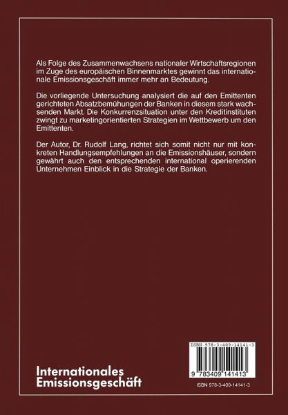 Vorbemerkung.- 1. Abschnitt: Charakterisierung des internationalen Emissionsgeschäftes der Banken.- A. Wesen des Emissionsgeschäftes der Banken.- B. Entwicklung zum internationalen Emissionsgeschäft.- C. Die Stellung des internationalen Emissionsgeschäftes in der Geschäftspolitik der Banken.- 2. Abschnitt: Die Leistungspolitischen Massnahmen Der Banken Im Internationalen EmissionsgeschäFt.- A. Die Sortimentspolitik der Banken.- B. Der leistungspolitische Gestaltungsbereich.- C. Die ergänzenden Leistungen.- 3. Abschnitt: Die Preispolitischen Massnahmen im Internationalen EmissionsgeschäFT.- A. Die preispolitische Basis.- B. Die Bestimmung des Emissionspreises.- 4. Abschnitt: Die Distributionspolitischen Massnahmen Der Banken Im Internationalen EmissionsgeschäFt.- A. Überblick.- B. Absatz über ein bankeigenes Distributionssystem.- C. Absatz unter Einschaltung bankfremder Distributionswege.- 5. Abschnitt: Die Kommunikationspolitischen Massnahmen im Internationalen EmissionsgeschäFT.- A. Die Öffentlichkeitsarbeit.- B. Die Werbung.- C. Die Verkaufsförderung.- 6. Abschnitt: Die Kombination der Absatzpolitischen Instrumente.- A. Konzeption des Marketing-Mix.- B. Einschränkung der Gestaltungsfreiheit.- C. Marketing-Mix-Entscheidungen.- Zusammenfassung.- 1. Expertenbefragung.- 2. Geschäftsvolumen und Anzahl internationaler Aktienemissionen in den Jahren 1983-1989.- 3. Geschäftsvolumen internationaler Anleiheemissionen nach Währungen.- 4. Geschäftsvolumen internationaler Anleiheemissionen nach Instrumenten.- 5. Entwicklung der Bilanzsummen der Banken sowie des Geschäftsvolumens internationaler Emissionsgeschäfte in den Jahren 1982-1989.- 6. Entwicklung der Positionen Zinsüberschuß und Provisionsüberschuß in den Jahresabschlüssen der Banken in den Jahren1982-1989.- 7. Rangfolge der Emissionshäuser bei Konsortial-führungen im internationalen Anleiheemissionsgeschäft im Jahre 1989.- 8. Rangfolge der Emissionshäuser bei Konsortial-führungen im internationalen Aktienemissions- geschfät im Jahre 1989.- 9. Geschäftliche Ausrichtung deutscher Banken in den Hauptleistungen des internationalen Emissionsgeschäftes.- 10. Marktanteilsentwicklung deutscher Banken im Bereich internationaler Anleiheemissionen in den Jahren 1985-1989.- 11. Marktanteilsentwicklung US-amerikanischer Banken im Bereich internationaler Anleiheemissionen in den Jahren 1985-1989.- 12. Marktanteilsentwicklung japanischer Banken im Bereich internationaler Anleiheemissionen in den Jahren 1985-1989.- 13. Marktanteilsentwicklung deutscher Banken im Bereich internationaler Aktienemissionen in den Jahren 1986-1989.- 14. Marktanteilsentwicklung US-amerikanischer Banken im Bereich internationaler Aktienemissionen in den Jahren 1986-1989.- 15. Marktanteilsentwicklung schweizerischer Banken im Bereich internationaler Aktienemissionen in den Jahren 1986-1989.- 16. Die geschäftliche Ausrichtung der deutschen Banken in der Bereitstellung von Swaps.- 17. Transaktionsvolumen der marktführenden Banken im Abschluß von Swaps.- 18. Die Kompetenz der Banken in einzelnen Sparten des Emissionsgeschäftes aus der Sicht von Emittenten.