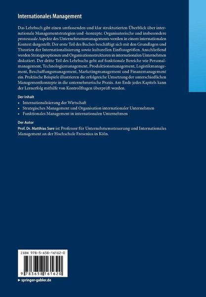 Das Lehrbuch gibt einen umfassenden und klar strukturierten Überblick über internationale Managementstrategien und -konzepte. Organisatorische und insbesondere prozessuale Aspekte des Unternehmensmanagements werden in einem internationalen Kontext dargestellt. Der erste Teil des Buches beschäftigt sich mit den Grundlagen und Theorien der Internationalisierung sowie kulturellen Einflussgrößen. Anschließend werden Strategieoptionen und Organisationsstrukturen in internationalen Unternehmen diskutiert. Der dritte Teil des Lehrbuchs geht auf funktionale Bereiche wie Personalmanagement, Technologiemanagement, Produktionsmanagement, Logistikmanagement, Beschaffungsmanagement, Marketingmanagement und Finanzmanagement ein. Praktische Beispiele illustrieren die erfolgreiche Umsetzung der unterschiedlichen Managementkonzepte in die unternehmerische Praxis. Am Ende jedes Kapitels kann der Lernerfolg mithilfe von Kontrollfragen überprüft werden.