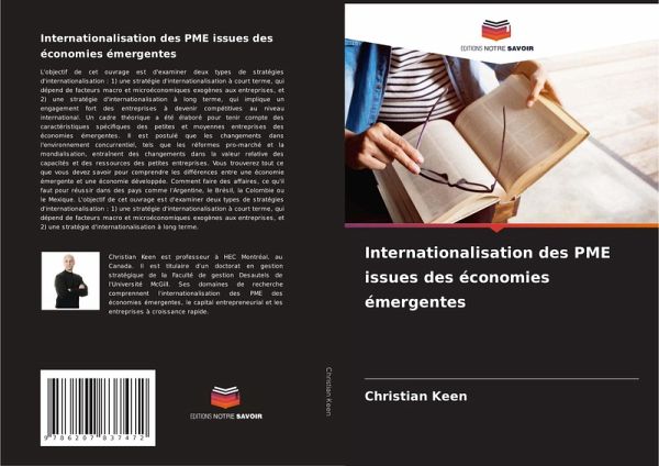 L'objectif de cet ouvrage est d'examiner deux types de stratégies d'internationalisation : 1) une stratégie d'internationalisation à court terme, qui dépend de facteurs macro et microéconomiques exogènes aux entreprises, et 2) une stratégie d'internationalisation à long terme, qui implique un engagement fort des entreprises à devenir compétitives au niveau international. Un cadre théorique a été élaboré pour tenir compte des caractéristiques spécifiques des petites et moyennes entreprises des économies émergentes. Il est postulé que les changements dans l'environnement concurrentiel, tels que les réformes pro-marché et la mondialisation, entraînent des changements dans la valeur relative des capacités et des ressources des petites entreprises. Vous trouverez tout ce que vous devez savoir pour comprendre les différences entre une économie émergente et une économie développée. Comment faire des affaires, ce qu'il faut pour réussir dans des pays comme l'Argentine, le Brésil, la Colombie ou le Mexique. L'objectif de cet ouvrage est d'examiner deux types de stratégies d'internationalisation : 1) une stratégie d'internationalisation à court terme, qui dépend de facteurs macro et microéconomiques exogènes aux entreprises, et 2) une stratégie d'internationalisation à long terme.