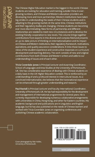 Preface Acknowledgements Notes on Contributors Introduction: Cooperation with Chinese Universities - Issues and Trends; P.Rastall Conceptions of Internationalisation and their Implications for Academic Engagement and Institutional Action: A Preliminary Case Study; Y.Turner & S.Robson Chinese Universities' Motivations in Transnational Higher Education and their Implications for Higher Education Marketization; L.Zheng The Internationalisation of Higher Education in China: The Case of One University; J.Wang Global Connections - Local Impacts: Trends and Developments for Internationalism and Cross Border Higher Education; D.Olcott Jr. Using Policy Initiatives to Support Both Learning Enhancement and Language Enhancement at a Hong Kong University; C.Mcnaught & A.Curtis Cultivators, Cows and Computers:Chinese Learners' Metaphors of Teachers; M.Cortazzi , L.Jin ,& W.Zhiru The Dissonance Between Insider and Outsider Perspectives of the 'Chinese Problem': Implications for one of the UK's Largest Undergraduate Programmes; P.V.Smith & X.Zhou Decoding Students Value Orientations in Contemporary China; S.Yang Overcoming Linguistic and Cultural Barriers to Integration: An Investigation of Two Models; S.Devlin & N.Peacock Building on Experience: Meeting the Needs of Chinese Students in British Higher Education; V.Edwards & A.Ran Chinese Learners and Interactive Learning; W.Littlewood Afterword: Responses to Internationalisation in the UK and the International Context and a Survey on Responses to Intercultural Communication Teaching; T.Coverdale-Jones Index