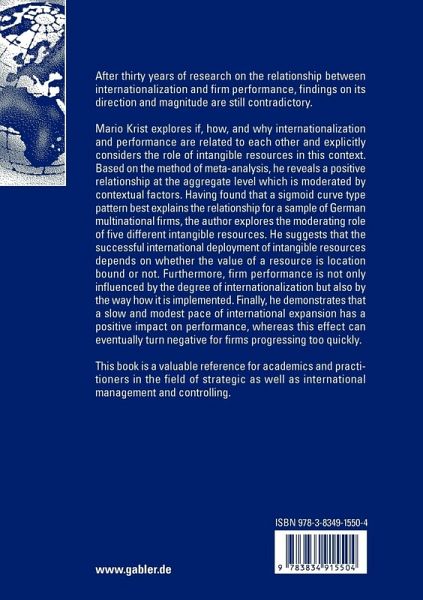 A large body of strategy and international business literature has examined the relationship between internationalization (regional diversification) and firm perfo- ance over the last decades. In essence, the current state of research on the internati- alization-performance relationship must be characterized, however, as being hetero- neous and inconclusive. From a conceptual point of view, increasing levels of inter- tionalization should have positive effects on firm performance due to economies of scale, market power effects, and risk reduction effects, to name but a few. At the same time, firms that expand internationally have to cope with substantial negative effects which are primarily associated with liabilities of foreignness. As a consequence, extensive empirical studies on the internationalization-performance relationship are somewhat mixed and contradictory. Against this background, Mario Krist highlights three central research objectives: First, he establishes if and why there should be a relationship between internationalization and firm performance. Second, he elaborates which intangible resources act as major success factors in the relationship between internationalization and performance and why this occurs. Third, he explores how these intangible resources act within the internationalization process concerning their ultimate impact on firm performance and how characteristics of the internationali- tion process itself have an impact on the focal relationship. Mario Krist chooses a topic which is of high practical relevance since inter- tionalization is at the core of corporate and business strategy. His research objectives are well developed based on a sound description of the current research status.
