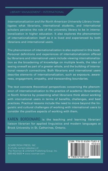 This book investigates the role of the North American university library in internationalization from the perspectives of both librarians and international users. It also explores how librarians and international users personally experience the phenomenon of internationalization in higher education in the United States and Canada.