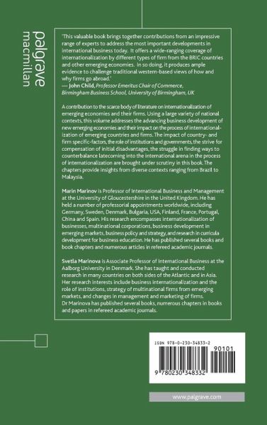 'This valuable book brings together contributions from an impressive range of experts to address the most important development in international business today. It offers a wide-ranging coverage of internationalization by different types of firm from the BRIC countries and other emerging economies. In so doing, it produces ample evidence to challenge traditional western-based views of how and why firms go abroad.' - Professor John Child, Emeritus Chair of Commerce, Birmingham Business School, UK