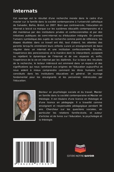 Cet ouvrage est le résultat d'une recherche menée dans le cadre d'un master sur la famille dans la société contemporaine à l'université catholique de Salvador, Bahia, Brésil, en 2007. Bien que controversée, l'éducation en internat a laissé sa marque sur les systèmes éducatifs contemporains et a été maintenue par des institutions privées et confessionnelles et par des initiatives publiques de semi-internat ou d'éducation intégrale. En prenant l'univers symbolique des sujets de recherche comme point de référence, les étapes étudiées dans ce travail ont été, tout d'abord, les attentes des parents lorsqu'ils emmènent leurs enfants suivre un enseignement de base régulier dans un internat et une institution confessionnelle. Ensuite, l'expérience des pensionnaires et la manière dont ils interprètent, acceptent ou rejettent la dynamique de l'internat et de ses espaces et, enfin, l'expérience de la vie en internat par les diplômés. Sur la base des résultats de la recherche, le lecteur intéressé est emmené dans un espace et des significations qui nous ramènent aux origines de l'éducation aujourd'hui et nous aident à mieux comprendre comment les êtres humains sont constitués dans les institutions éducatives en général. Un ouvrage fondamental pour les enseignants et les personnes intéressées par l'éducation.