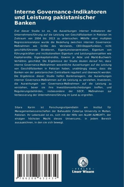 Ziel dieser Studie ist es, die Auswirkungen interner Indikatoren der Unternehmensführung auf die Leistung von Geschäftsbanken in Pakistan im Zeitraum von 2004 bis 2013 zu untersuchen. Mithilfe einer multiplen Regressionsanalyse wurde die Beziehung zwischen internen Governance-Maßnahmen wie Größe des Vorstands, CEO-Doppelfunktion, nicht geschäftsführende Direktoren, Eigentumskonzentration, Eigentum von Führungskräften und institutionellem Eigentum und Leistungskennzahlen wie Kapitalrendite, Eigenkapitalrendite, Gewinn je Aktie und Markt-Buchwert-Verhältnis geschätzt. Die Ergebnisse der Studie deuten darauf hin, dass interne Governance-Maßnahmen wesentliche Auswirkungen auf die Leistung von Geschäftsbanken in Pakistan haben, unabhängig davon, dass die Banken von der pakistanischen Zentralbank reguliert und überwacht werden. Die Ergebnisse dieser Studie helfen Bankmanagern, die Auswirkungen interner Governance-Maßnahmen auf die Leistung zu verstehen, Investoren, die Auswirkungen vonGovernance-Maßnahmen auf die Leistung zu verstehen, bevor sie ihre Investitionsentscheidungen treffen, und Regulierungsbehörden, insbesondere der SECP, Maßnahmen zur Verbesserung der Unternehmensführung im Land zu ergreifen.