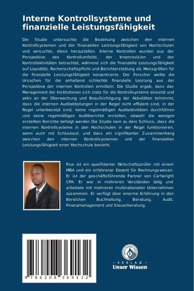 Die Studie untersuchte die Beziehung zwischen den internen Kontrollsystemen und der finanziellen Leistungsfähigkeit von Hochschulen und versuchte, diese herzustellen. Interne Kontrollen wurden aus der Perspektive des Kontrollumfelds, der Innenrevision und der Kontrollaktivitäten betrachtet, während sich die finanzielle Leistungsfähigkeit auf Liquidität, Rechenschaftspflicht und Berichterstattung als Messgrößen für die finanzielle Leistungsfähigkeit konzentrierte. Der Forscher wollte die Ursachen für die anhaltend schlechte finanzielle Leistung aus der Perspektive der internen Kontrollen ermitteln. Die Studie ergab, dass das Management der Institutionen sich stets für die Kontrollsysteme einsetzt und aktiv an der Überwachung und Beaufsichtigung der Aktivitäten teilnimmt, dass die internen Auditabteilungen in der Regel nicht effizient sind, in der Regel unterbesetzt sind, keine regelmäßigen Auditaktivitäten durchführen und keine regelmäßigen Auditberichte erstellen, obwohl die wenigen erstellten Berichte befolgt werden Die Studie kam zu dem Schluss, dass die internen Kontrollsysteme in den Hochschulen in der Regel funktionieren, wenn auch mit Schluckauf, und dass ein signifikanter Zusammenhang zwischen den internen Kontrollsystemen und der finanziellen Leistungsfähigkeit einer Hochschule besteht.