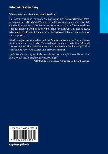 Das Gute liegt auch im Personalbereich oft so nah. Das Buch des Berliner Unternehmensberaters Dr. Michael Thomas ist ein Plädoyer dafür, die Aufmerksamkeit der Geschäftsleitung und des Personalmanagements stärker auf die vorhandenen Talente zu richten. Denn in schwierigen Zeiten ist es riskant und auch zu teuer, fehlende eigene Personalplanung durch die Jagd nach externen Spitzenkräften zu kompensieren.Als ehemaliger Personaldirektor weiß der Autor, wovon er schreibt. Talente finden statt suchen lautet die Devise. Thomas bietet ein konkretes 4-Phasen-Modell zur Konzeption eines unternehmensinternen Systems der Führungskräfteentwicklung sowie Checklisten und Interviewleitfaden.