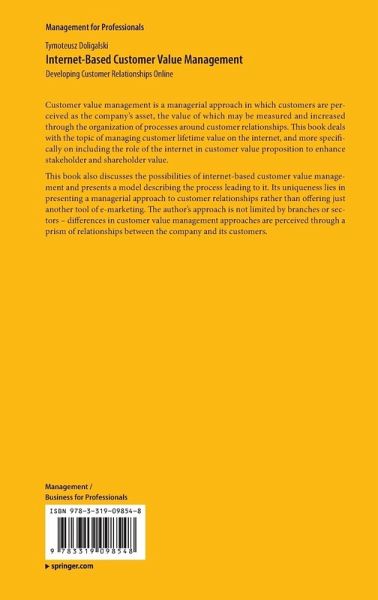 Customer value management is a managerial approach in which customers are perceived as the company's asset, the value of which may be measured and increased through the organization of processes around customer relationships. This book deals with the topic of managing customer lifetime value on the internet, and more specifically on including the role of the internet in customer value proposition to enhance stakeholder and shareholder value.