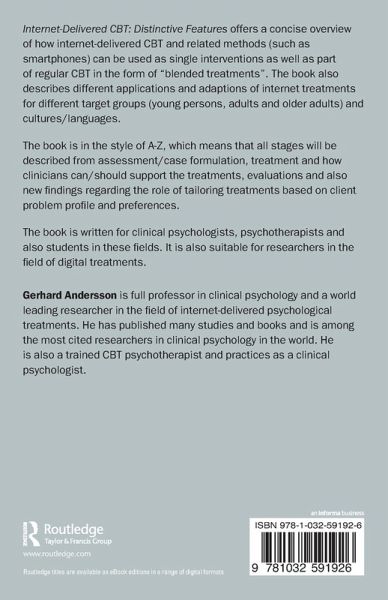 Internet-Delivered CBT: Distinctive Features offers a concise overview of how internet-delivered CBT and related methods (such as smartphones) can be used as single interventions as well as part of regular CBT in the form of "blended treatments". The book also describes different applications and adaptions of internet treatments for different target groups (young persons, adults and older adults) and cultures/languages.