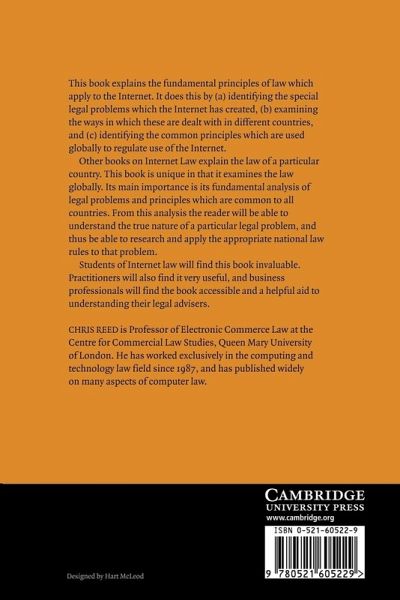 The common fallacy regarding cyberspace is that the Internet is a new jurisdiction, in which none of the existing rules and regulations apply. However, all the actors involved in an Internet transaction live in one or more existing jurisdictions, so rather than being unregulated, the Internet is arguably highly regulated. Worse, much of this law and regulation is contradictory and difficult, or impossible, to comply with. This 2004 book takes a global view of the fundamental legal issues raised by the advent of the Internet as an international communications mechanism. Legal and other materials are integrated to support the discussion of how technological, economic and political factors are shaping the law governing the Internet. Global trends in legal issues are addressed and the effectiveness of potential mechanisms for legal change that are applicable to Internet law are also examined. Of interest to students and practitioners in computer and electronic commerce law.