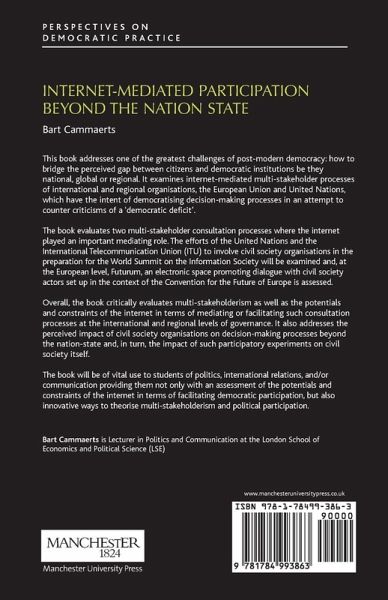 This book addresses the growing gap between policy makers and (organised) citizens, and attempts by international organisations to implement a multi-stakeholder approach largely facilitated by the internet.