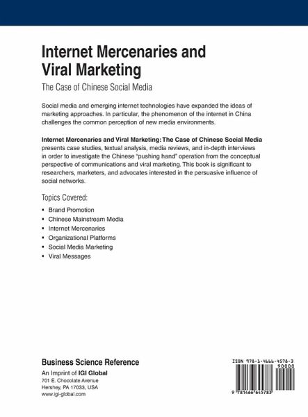 Social media and emerging internet technologies have expanded the ideas of marketing approaches. In particular, the phenomenon of the internet in China challenges the common perception of new media environments. Internet Mercenaries and Viral Marketing: The Case of Chinese Social Media presents case studies, textual analysis, media reviews, and in-depth interviews in order to investigate the Chinese "pushing hand" operation from the conceptual perspective of communications and viral marketing. This book is significant to researchers, marketers, and advocates interested in the persuasive influence of social networks.