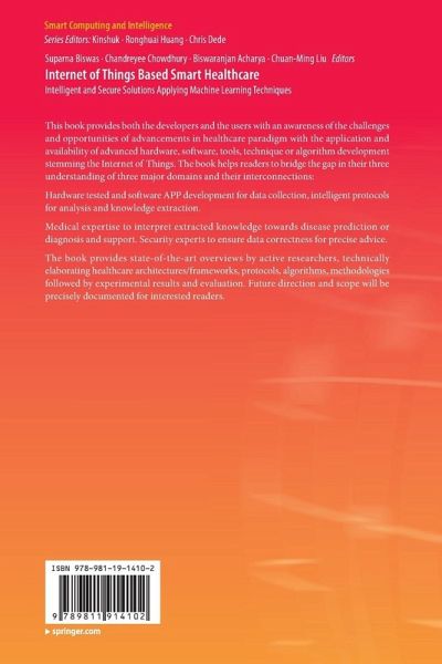 Part 1 IoT based Smart Healthcare.- Chapter 1 Introduction.- Chapter 2 Architecture for Smart Healthcare: Cloud vs Edge.- Chapter 3 Main Challenges and Concerns of Health IoT Data.- Part 2 Context and Body Vitals Monitoring Systems.- Chapter 4 Human Activity Recognition Systems Based on Sensor Data using Machine Learning.- Chapter 5 Human Activity Recognition Systems Based on Audio-Video Data using Machine Learning and Deep learning.- Chapter 6 Review of Body Vitals Monitoring Systems for Disease Prediction.- Chapter 7 Review of Context Aware System Implementations.- Part 3 Social Sensing Applications for Public Health.- Chapter 8 Types of Social Sensing Data.- Chapter 9 Social Data Analysis Techniques and Applications.- Chapter 10 Challenges and Limitations of Social Data Analysis Approaches.- Part 4 Reliability, Security and Privacy of Health Data.- Chapter 11 Quality of Service vs Quality of Experience for Real-time Smart Healthcare.- Chapter 12 Security and Privacy Issues of HealthData.- Chapter 13 Review of Performance Metrics and Corrective Measures for Health Data Analysis.