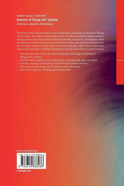 This book covers essential topics in the architecture and design of Internet of Things (IoT) systems. The authors provide state-of-the-art information that enables readers to design systems that balance functionality, bandwidth, and power consumption, while providing secure and safe operation in the face of a wide range of threat and fault models. Coverage includes essential topics in system modeling, edge/cloud architectures, and security and safety, including cyberphysical systems and industrial control systems.