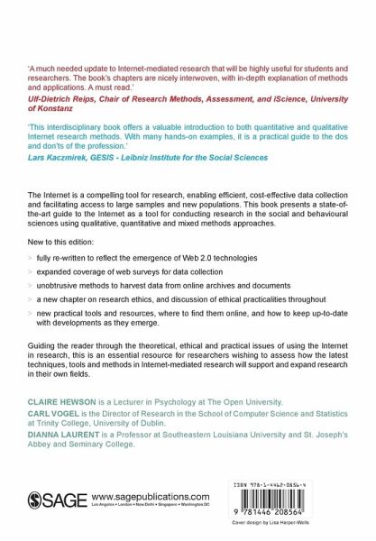 The internet is a compelling tool for research, enabling efficient, cost-effective data collection and facilitating access to large samples and new populations. This book presents a state-of-the-art guide to the internet as a tool for conducting research in the social and behavioural sciences using qualitative, quantitative and mixed methods approaches.