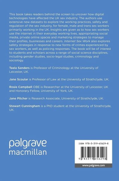 This book takes readers behind the screen to uncover how digital technologies have affected the UK sex industry. The authors use extensive new datasets to explore the working practices, safety and regulation of the sex industry, for female, male and trans sex workers primarily working in the UK. Insights are given as to how sex workers use the internet in their everyday working lives, appropriating social media, private online spaces and marketing strategies to manage their profiles, businesses and careers. Internet Sex Work also explores safety strategies in response to new forms of crimes experienced by sex workers, as well as policing responses. The book will be of interest to students and scholars across a range of social science disciplines, including gender studies, socio-legal studies, criminology and sociology.