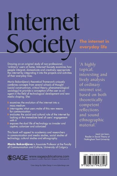 Internet Society investigates internet use and it's implications for society through insights into the daily experiences of ordinary users. Drawing on an original study of non-professional, 'ordinary' users at home, this book examines how people interpret, domesticate and creatively appropriate the Internet by integrating it into the projects and activities of their everyday lives.
