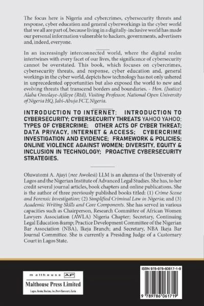 The focus here is Nigeria and cybercrimes, cybersecurity threats and response, cyber education and general cyberworkings in the cyber world that we all are part of, because living in a digitally- inclusive world has made our personal information vulnerable to hackers, governments, advertisers and, indeed, everyone. In an increasingly interconnected world, where the digital realm intertwines with every facet of our lives, the significance of cybersecurity cannot be overstated. This book, which focuses on cybercrimes, cybersecurity threats, and response, cyber education and, general workings in the cyber world, depicts how technology has not only ushered in unprecedented opportunities but also exposed the world to new and evolving threats that transcend borders and boundaries. - Hon. (Justice) Alaba Omolaye-Ajileye (Rtd), Visiting Professor, National Open University of Nigeria HQ. Jabi-Abuja FCT, Nigeria.