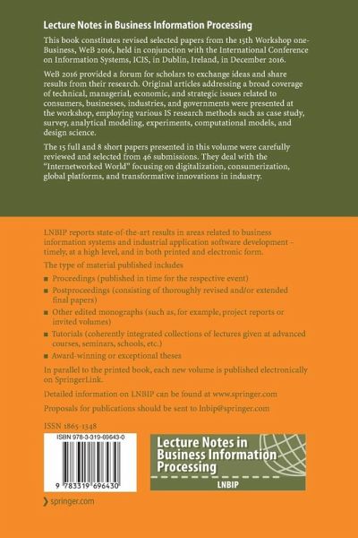The 15 full and 8 short papers presented in this volume were carefully reviewed and selected from 46 submissions. They deal with the "Internetworked World" focusing on digitalization, consumerization, global platforms, and transformative innovations in industry.