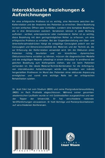 Für eine erfolgreiche Prothese ist es wichtig, eine Harmonie zwischen der Kieferrelation und der Anatomie des Patienten zu erreichen. Diese Beziehung ist kein einfaches Öffnen oder Schließen, sondern eine komplexe Beziehung, die in drei Dimensionen existiert. Variationen können in jeder Richtung auftreten - vertikal, anteroposterior oder mediolateral. Daher ist es wichtig, diese Beziehung mit dem geringstmöglichen Fehler zu erfassen, um eine erfolgreiche Prothese zu erhalten. Bei der Gegenüberstellung von Ober- und Unterkieferzahnabdrücken hängt die endgültige Genauigkeit jedoch von der Genauigkeit und Dimensionsstabilität des Materials und der Technik ab, die zur Erfassung der Kieferrelation verwendet wird. Um die Okklusion eines Patienten richtig beurteilen und ein künstliches dynamisches Okklusionsschema erstellen zu können, müssen die diagnostischen Modelle und die endgültigen Modelle unbedingt in einem Artikulator in annähernd der gleichen Beziehung zum Kiefergelenk stehen, wie sie beim Patienten vorhanden ist. Die ideale Material-Technik-Kombination für die Anfertigung von interokklusalen Aufzeichnungen würde das Einsetzen von indirekt hergestellten Prothesen im Mund des Patienten ohne okklusale Anpassung ermöglichen und somit eine wichtige Rolle bei der erfolgreichen Rehabilitation spielen.