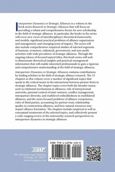 Interpartner Dynamics in Strategic Alliances is a volume in the book series Research in Strategic Alliances that will focus on providing a robust and comprehensive forum for new scholarship in the field of strategic alliances. In particular, the books in the series will cover new views of interdisciplinary theoretical frameworks and models, significant practical problems of alliance organization and management, and emerging areas of inquiry. The series will also include comprehensive empirical studies of selected segments of business, economic, industrial, government, and non-profit activities with wide prevalence of strategic alliances. Through the ongoing release of focused topical titles, this book series will seek to disseminate theoretical insights and practical management information that will enable interested professionals to gain a rigorous and comprehensive understanding of the field of strategic alliances. Interpartner Dynamics in Strategic Alliances contains contributions by leading scholars in the field of strategic alliance research. The 13 chapters in this volume cover a number of significant topics that speak to the critical issues in the interactions between partner firms in strategic alliances. The chapter topics cover both the broader issues, such as relational mechanisms in alliances, role of interpersonal networks, parental control of joint ventures, conflict management, interpartner diversity, and multilevel embeddedness in multilateral alliances, and the more focused problems of alliance competence, roles of third parties, accounting for partner trust, relationship quality in construction alliances, and how natural resources may impact alliance formation. The chapters include empirical as well as conceptual treatments of the selected topics, and collectively present a wideranging review of the noteworthy research perspectives on interpartner dynamics in strategic alliances.