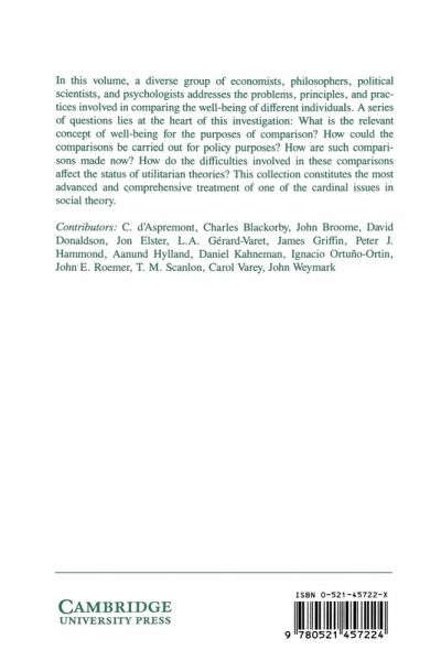 In this volume a diverse group of economists, philosophers, political scientists, and psychologists address the problems, principles, and practices involved in comparing the well-being of different individuals. A series of questions lie at the heart of this investigation: What is the relevant concept of well-being for the purposes of comparison? How could the comparisons be carried out for policy purposes? How are such comparisons made now? How do the difficulties involved in these comparisons affect the status of utilitarian theories? This collection constitutes the most advanced and comprehensive treatment of one of the cardinal issues in social theory.