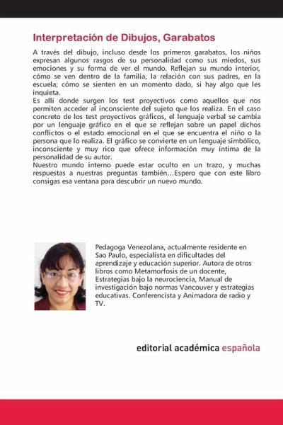 A través del dibujo, incluso desde los primeros garabatos, los niños expresan algunos rasgos de su personalidad como sus miedos, sus emociones y su forma de ver el mundo. Reflejan su mundo interior, cómo se ven dentro de la familia, la relación con sus padres, en la escuela; cómo se sienten en un momento dado, si hay algo que les inquieta.Es allí donde surgen los test proyectivos como aquellos que nos permiten acceder al inconsciente del sujeto que los realiza. En el caso concreto de los test proyectivos gráficos, el lenguaje verbal se cambia por un lenguaje gráfico en el que se reflejan sobre un papel dichos conflictos o el estado emocional en el que se encuentra el niño o la persona que lo realiza. El gráfico se convierte en un lenguaje simbólico, inconsciente y muy rico que ofrece información muy íntima de la personalidad de su autor.Nuestro mundo interno puede estar oculto en un trazo, y muchas respuestas a nuestras preguntas también...Espero que con este libro consigas esa ventana para descubrir un nuevo mundo.