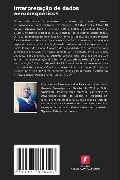 Foram efectuadas investigações geofísicas de quatro mapas aeromagnéticos, folha 95 (kaoje), 96 (Shanga), 117 (Konkoso) e folha 118 (Yelwa), situados entre a longitude 4,00¿ e 5,00¿E e a latitude 10,50¿ e 11,50¿N, no noroeste da Nigéria, para estudar as estruturas subterrâneas. O mapa de intensidade magnética total, o mapa residual e o mapa regional foram obtidos utilizando o Oasis montaj versão 7.1. O resultado do mapa regional indica uma sedimentação mais profunda no sul do que na parte norte da área de estudo. A análise da profundidade espetral revelou duas camadas magnéticas. A primeira camada varia de 0,586 km a 1,249 km, enquanto a profundidade da segunda camada varia de 2,506 km a 3,174 km. A maior sedimentação (3,2 km) foi encontrada na folha 117 e a menor sedimentação foi encontrada na folha 96. A continuação ascendente da área de estudo indica que a profundidade do subsolo é maior na secção sudeste da área de estudo. O Source Parameter Imaging (SPI) mostra a estimativa de profundidade variando de 768 km a 2396 km.