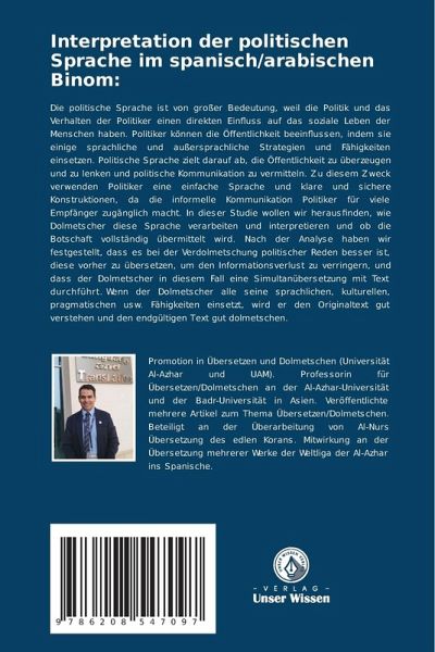 Die politische Sprache ist von großer Bedeutung, weil die Politik und das Verhalten der Politiker einen direkten Einfluss auf das soziale Leben der Menschen haben. Politiker können die Öffentlichkeit beeinflussen, indem sie einige sprachliche und außersprachliche Strategien und Fähigkeiten einsetzen. Politische Sprache zielt darauf ab, die Öffentlichkeit zu überzeugen und zu lenken und politische Kommunikation zu vermitteln. Zu diesem Zweck verwenden Politiker eine einfache Sprache und klare und sichere Konstruktionen, da die informelle Kommunikation Politiker für viele Empfänger zugänglich macht. In dieser Studie wollen wir herausfinden, wie Dolmetscher diese Sprache verarbeiten und interpretieren und ob die Botschaft vollständig übermittelt wird. Nach der Analyse haben wir festgestellt, dass es bei der Verdolmetschung politischer Reden besser ist, diese vorher zu übersetzen, um den Informationsverlust zu verringern, und dass der Dolmetscher in diesem Fall eine Simultanübersetzung mit Text durchführt. Wenn der Dolmetscher alle seine sprachlichen, kulturellen, pragmatischen usw. Fähigkeiten einsetzt, wird er den Originaltext gut verstehen und den endgültigen Text gut dolmetschen.