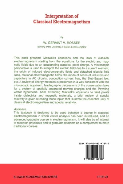 1. A Typical Conventional Development of Maxwell's Equations.- 2. The Scalar Potential ? and the Vector Potential A.- 3. The Electric and Magnetic Fields due to an Accelerating Classical Point Charge.- 4. Development of Maxwell's Equations from the Expressions for the Electric and Magnetic Fields due to a Moving Classical Point Charge.- 5. Electric Fields due to Electrical Circuits.- 6. Magnetic Fields due to Electrical Circuits.- 7. Quasi-Stationary Phenomena and AC Theory.- 8. Forces, Energy and Electromagnetic Momentum.- 9. Stationary Dielectrics and Stationary Magnetic Materials.- 10. Special Relativity and Classical Electromagnetism.- Appendix A. Mathematical Methods.- A1. A summary of the formulae of vector analysis.- A1.1. Scalar and vector products.- A1.2. The gradient of a scalar.- A1.3. The divergence of a vector.- A1.4. The curl of a vector.- A1.5. The Laplacian operator.- A1.6. Some useful relations.- A1.7. Gauss' mathematical theorem.- A1.8. Stokes' theorem.- A1.9. Cylindrical coordinates.- A1.10. Spherical polar coordinates.- A2. The partial derivatives of macroscopic field variables.- A3. Some useful mathematical relations.- A4. The corrections to the differential form of the Biot-Savart law for steady currents.- Appendix B. Conduction Current Flow in Stationary Conductors.- B 1. Example of the mode of action of a source of emf.- B2. Location of the charge distributions associated with conduction current flow.- B3. Magnitudes of the surface and boundary charge distributions associated with conduction current flow.- B4. Models of conduction current flow in a stationary conductor.- B5. Energy propagation in DC circuits.- Appendix C. The Electric and Magnetic Fields due to an Accelerating Classical Point Charge.- Cl. Introduction.- C2. Calculationof the electric field.- C3. Calculation of the magnetic field.- Appendix E. The Transformations of Special. Relativity.