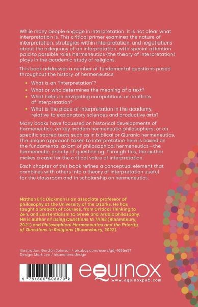 While many people engage in interpretation, it is not clear what interpretation is. This critical primer examines the nature of interpretation, strategies within interpretation, and negotiations about the adequacy of an interpretation, with special attention paid to possible roles hermeneutics (the theory of interpretation) plays in the academic study of religions. This book addresses a number of fundamental questions posed throughout the history of hermeneutics: ¿ What is an "interpretation"? ¿ What or who determines the meaning of a text? ¿ What helps in navigating competitions or conflicts of interpretation? ¿ What is the place of interpretation in the academy, relative to explanatory sciences and productive arts? Many books have focussed on historical developments of hermeneutics, on key modern hermeneutic philosophers, or on specific sacred texts such as in biblical or Quranic hermeneutics. The unique approach taken to interpretation here is based on the fundamental axiom of philosophical hermeneutics-the hermeneutic priority of questioning. Through this, the author makes a case for the critical value of interpretation. Each chapter of this book refines a conceptual element that combines with others into a theory of interpretation useful for the classroom and in scholarship on hermeneutics.