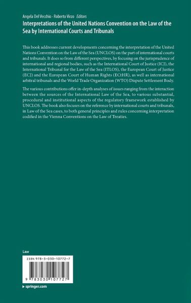 This book addresses current developments concerning the interpretation of the United Nations Convention on the Law of the Sea (UNCLOS) on the part of international courts and tribunals. It does so from different perspectives, by focusing on the jurisprudence of international and regional bodies, such as the International Court of Justice (ICJ), the International Tribunal for the Law of the Sea (ITLOS), the European Court of Justice (ECJ) and the European Court of Human Rights (ECtHR), as well as international arbitral tribunals and the World Trade Organization (WTO) Dispute Settlement Body.
