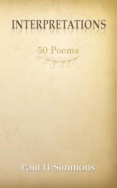 'Interpretations' is a collection of 50 poems by Paul H Simmons, published in 2025, which seek to shape, represent, explain, or uncover feelings and experiences in a creative and original way, without being over-obscure in their treatment. The poems are reflective, descriptive, and insightful, based on ideas, emotions, and situations, and touching or dwelling on - sometimes melancholy or soulful - aspects of the human condition; as revealed in nature, art, religion, spirituality, and thought. Not without a lighter sense at times though...