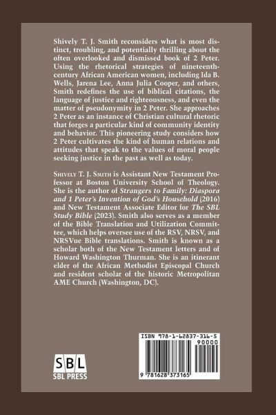 Shively T. J. Smith reconsiders what is most distinct, troubling, and potentially thrilling about the often overlooked and dismissed book of 2 Peter. Using the rhetorical strategies of nineteenth-century African American women, including Ida B. Wells, Jarena Lee, Anna Julia Cooper, and others, Smith redefines the use of biblical citations, the language of justice and righteousness, and even the matter of pseudonymity in 2 Peter. She approaches 2 Peter as an instance of Christian cultural rhetoric that forges a particular kind of community identity and behavior. This pioneering study considers how 2 Peter cultivates the kind of human relations and attitudes that speak to the values of moral people seeking justice in the past as well as today.