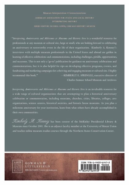 Interpreting Anniversaries and Milestones at Museums and Historic Sites is an invaluable resource for a wide range of cultural organizations that are attempting to plan an historical anniversary celebration or commemoration, including museums, churches, cities, libraries, colleges, arts organizations, science centers, historical societies, and historic house museums. As you plan a milestone anniversary for your institution, learn from what others have already accomplished in their own communities.