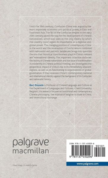 Introduction; Bart Dessein PART I: HISTORICAL CONCIOUSNESS 1. Chinese Nationalists under Manchu Emperors: The Origins of Chinese Nationalism in the 19th and Early 20th Century; Julia Schneider 2. Radical Confucianism: The Critique of Imperial Orthodoxy in Guocui xuebao (1905-1911); Tze-ki Hon 3. History and Historical Consciousness in Contemporary China: Political Confucianism, Spiritual Confucianism, and the Politics of Spirit; Ady Van den Stock 4. All-under-Heaven and the Chinese Nation-state; Bart Dessein PART II: CHINA AND HER PERIPHERY 5. Subjective Knowledge Foundation of the Cross-Straits International Peace Discourse; Hung-jen Wang 6. Universal and Asian Values in East Asian Regionalism. Japan's 'New Asianism' after the Cold War; Kristof Elsen 7. Diversifying Narratives: Perceptions of a Weak Japan Facing a Rising China; Tine Walravens 8. Hiding Behind the Tribute: Status, Symbol, and Power in Sino-Southeast Asian Relations, Past and Present; Bruno Hellendorff 9. The Indo-Pacific: The New Great Game between China and the United States; Tanguy Struye de Swielande 10. Nationalism, Historical Consciousness and Regional Stability: Rising China as a Regional Power and Its New Assertiveness in the South China Sea; Emile Kok Kheng Yeoh 11. China's Rise in Central Asia: The Dragon enters the Heart of Eurasia; Thierry Kellner PART III: CHINA AND THE WORLD AT LARGE 12. The Rise of China Within Global Governance; Niall Duggan 13. China's Rise as a Geopolitical Identity of the European Union; Frank Gaenssmantel 14. Is China on the Verge of a Weltpolitik? A Comparison of the Current Shift in the Balance of Power between China and the West and the Shift between Great Britain ad Wilhelmine Germany; Jean-Christophe Defraigne Epilogue; Bart Dessein