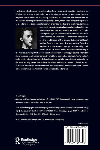 Music theory is often seen as independent from - even antithetical to - performance. While music theory is an intellectual enterprise, performance requires an intuitive response to the music. But this binary opposition is a false one, which serves neither the theorist nor the performer. In Interpreting Chopin Alison Hood brings her experience as a performer to bear on contemporary analytical models. She combines significant aspects of current analytical approaches and applies that unique synthetic method to selected works by Chopin, casting new light on the composer's preludes, nocturnes and barcarolle and raising interpretive questions of central interest to performers.