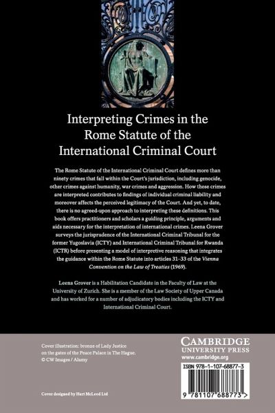 The Rome Statute of the International Criminal Court defines more than ninety crimes that fall within the Court's jurisdiction: genocide, other crimes against humanity, war crimes and aggression. How these crimes are interpreted contributes to findings of individual criminal liability, and moreover affects the perceived legitimacy of the Court. And yet, to date, there is no agreed-upon approach to interpreting these definitions. This book offers practitioners and scholars a guiding principle, arguments and aids necessary for the interpretation of international crimes. Leena Grover surveys the jurisprudence of the International Criminal Tribunals for the former Yugoslavia and Rwanda before presenting a model of interpretive reasoning that integrates the guidance within the Rome Statute into articles 31-33 of the Vienna Convention on the Law of Treaties (1969).
